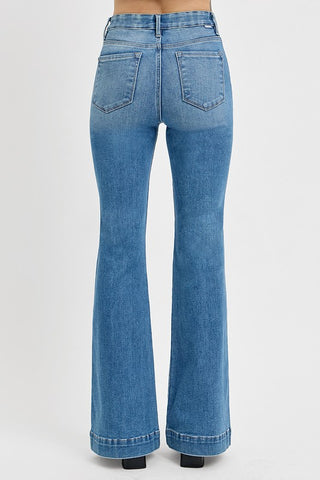 The Front Patch Pocket Flare Jeans feature a retro-inspired design with front patch pockets for a unique and stylish detail. These jeans boast a flared leg silhouette that adds a touch of vintage charm to your outfit. Perfect for a trendy and statement-making look, these flare jeans offer a fashionable twist on classic denim.